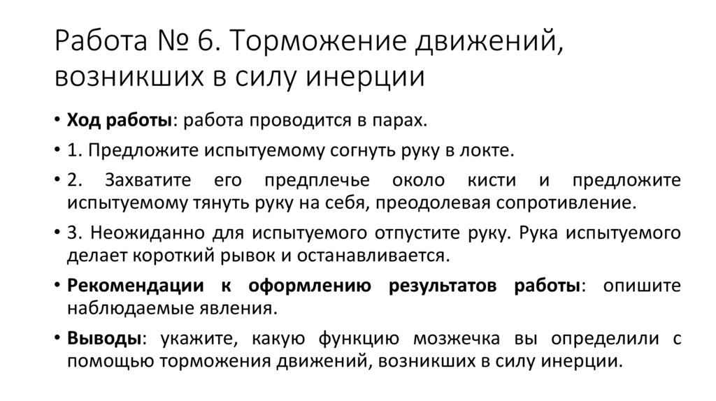 Работа № 6. Торможение движений,возникших в силу инерции