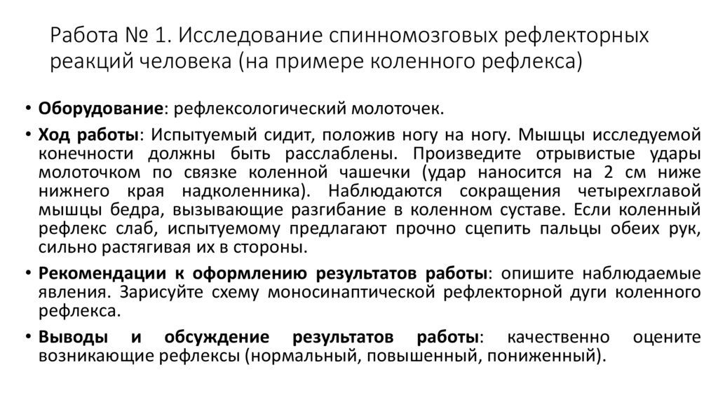 Работа № 1. Исследование спинномозговых рефлекторныхреакций человека (на примере коленного рефлекса)