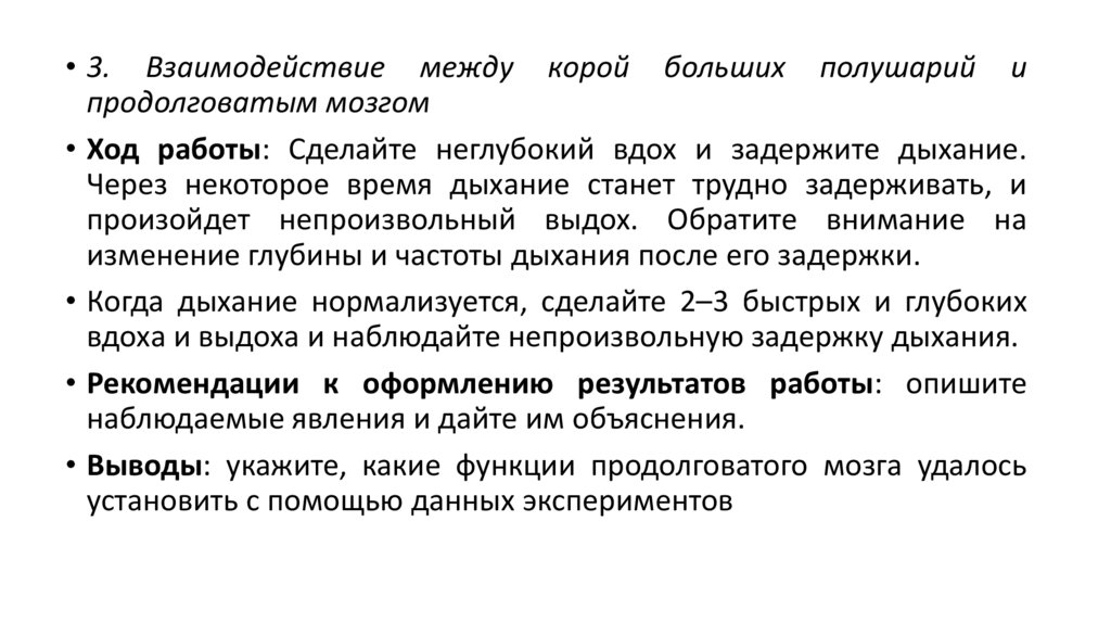 • Выводы: укажите, какие функции продолговатого мозга удалось