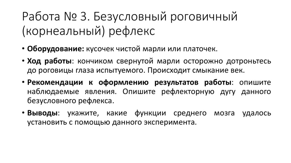 Работа № 3. Безусловный роговичный(корнеальный) рефлекс