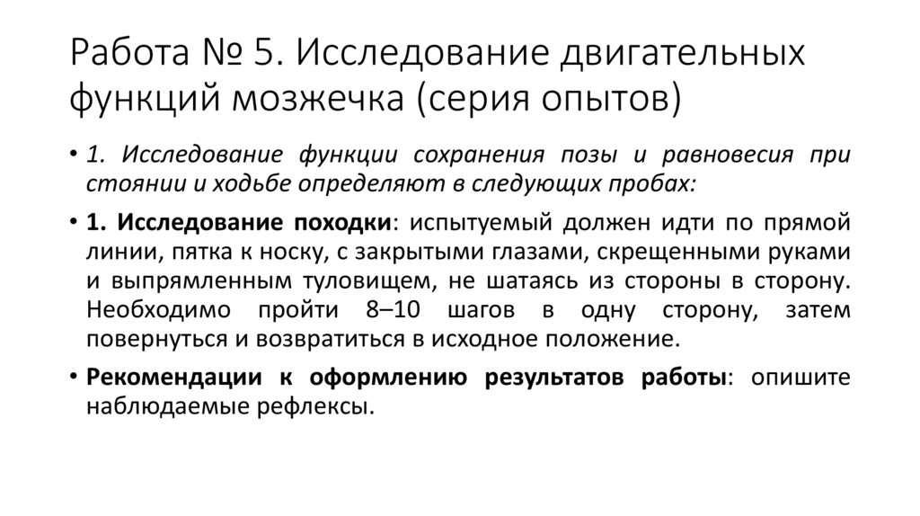 Работа № 5. Исследование двигательныхфункций мозжечка (серия опытов)