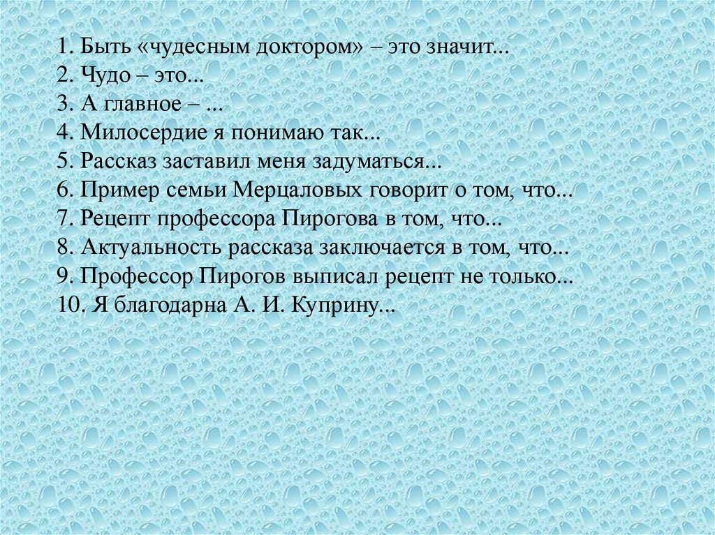 1. Быть «чудесным доктором» – это значит...2. Чудо – это...
