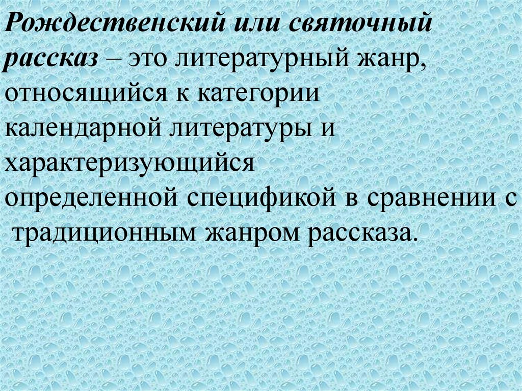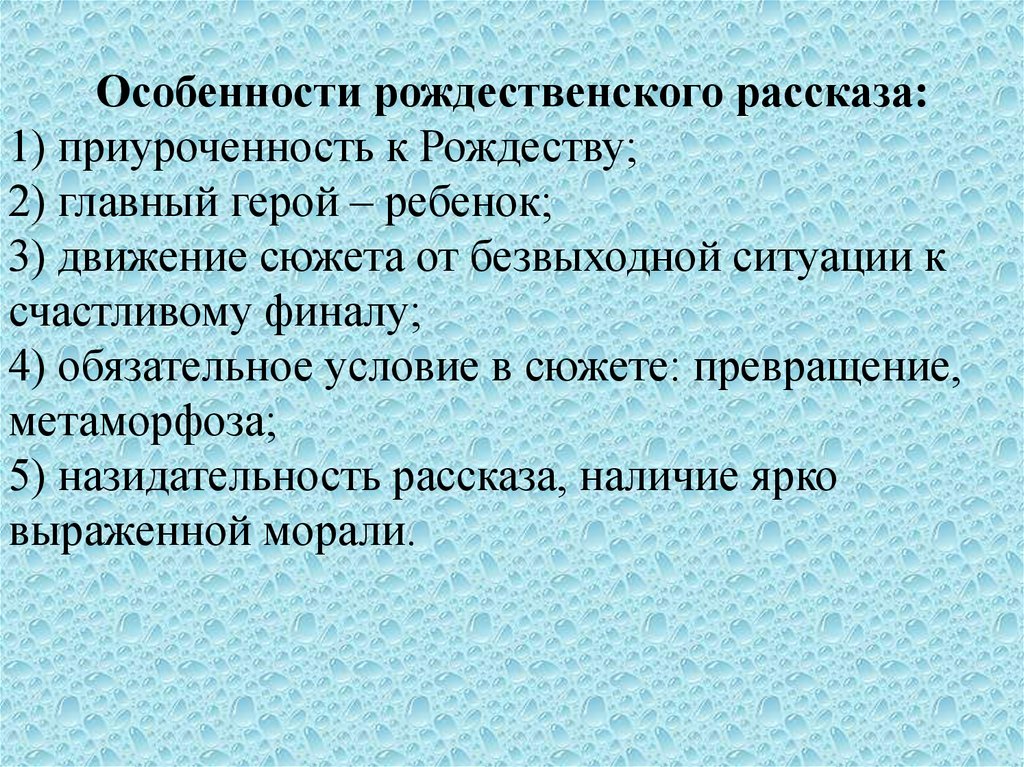 Особенности рождественского рассказа:1) приуроченность к Рождеству;