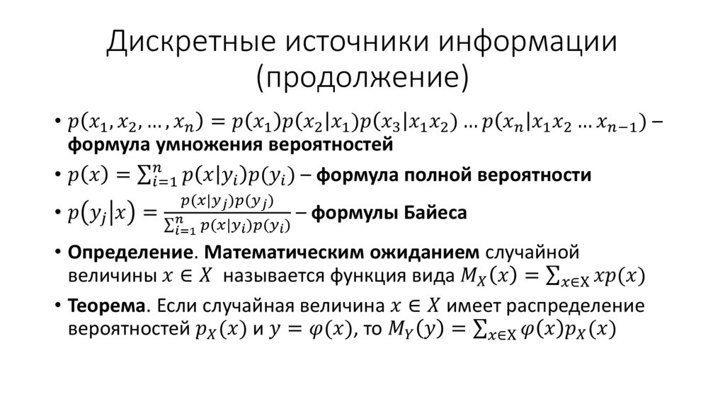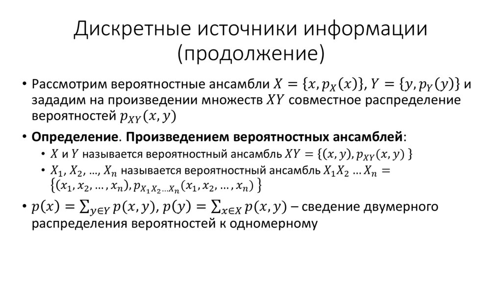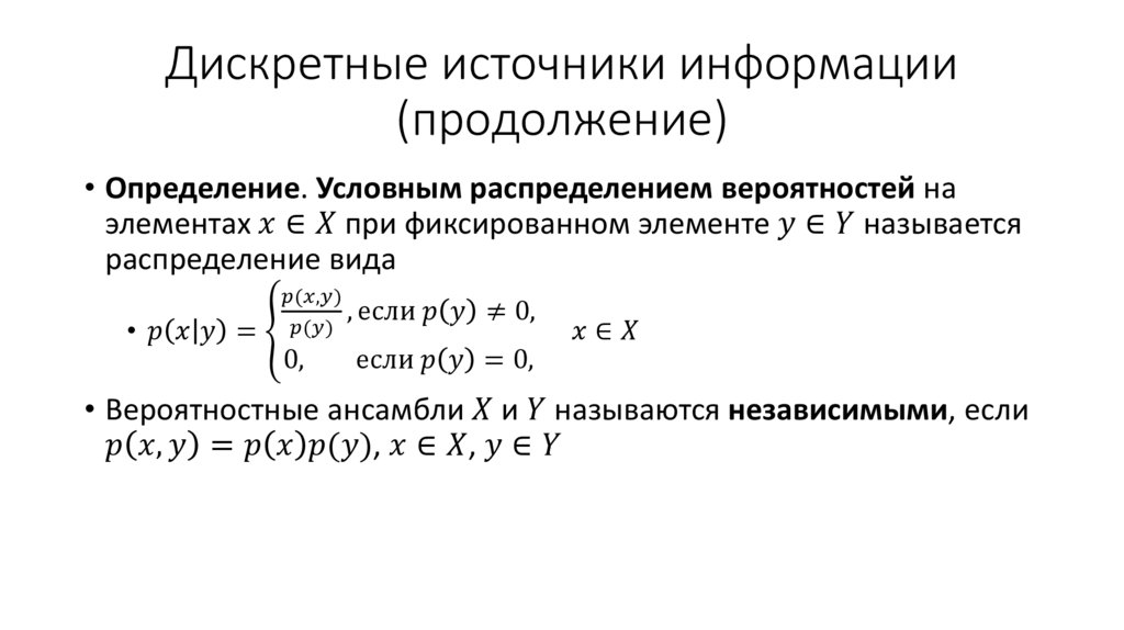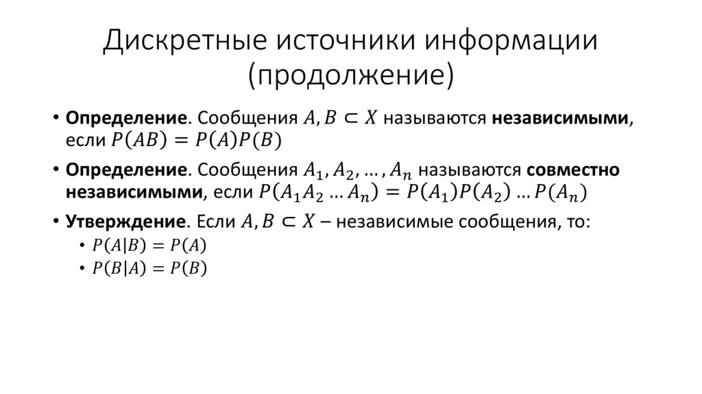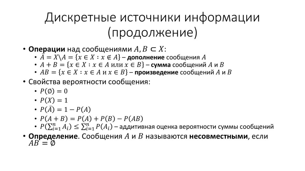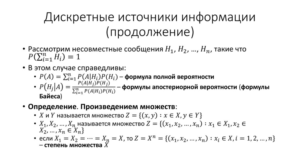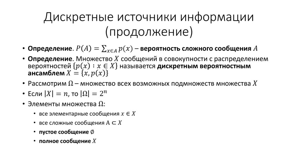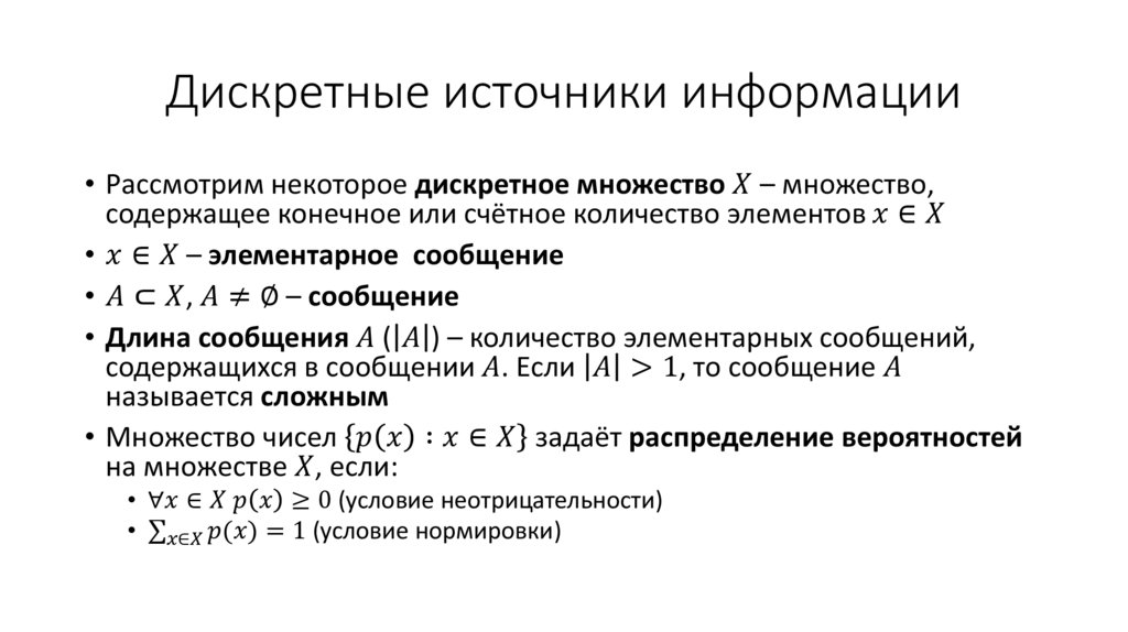 Дискретные источники информации• Рассмотрим некоторое дискретное множество