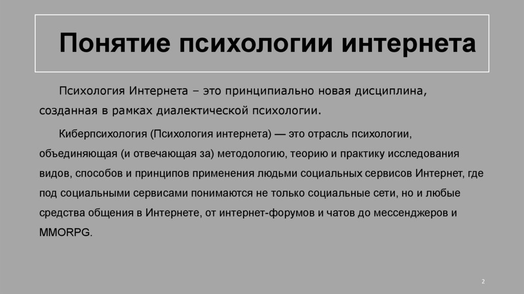 Понятие психологии интернетаПсихология Интернета – это принципиально новая дисциплина,