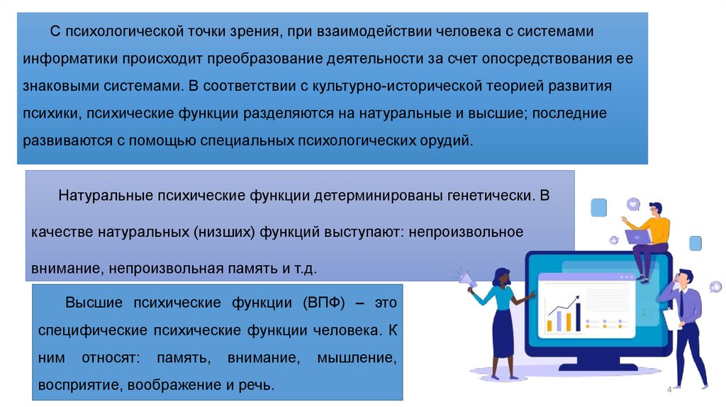 С психологической точки зрения, при взаимодействии человека с системамиинформатики происходит преобразование деятельности за счет опосредствования ее