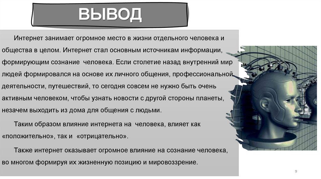 ВЫВОДИнтернет занимает огромное место в жизни отдельного человека и