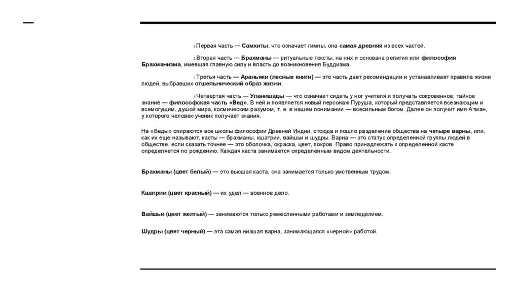 2.Вторая часть — Брахманы — ритуальные тексты, на них и основана религия или философия