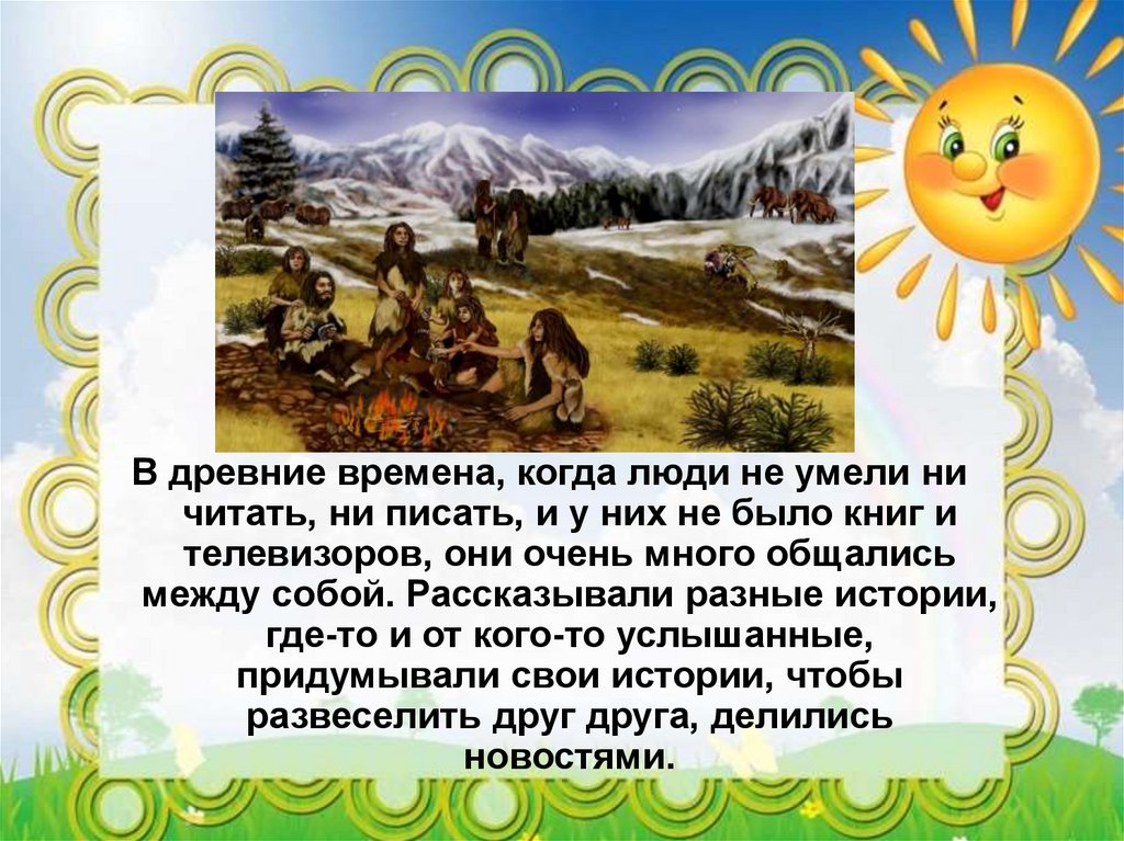 В древние времена, когда люди не умели ничитать, ни писать, и у них не было книг и
