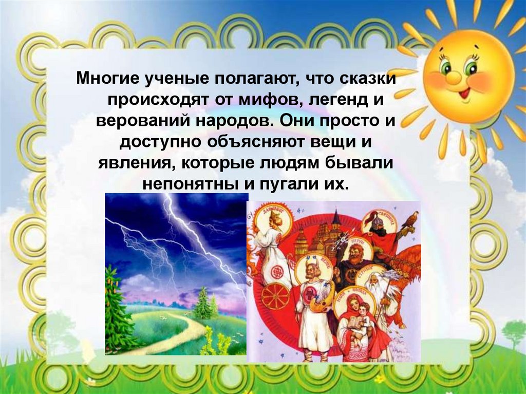 Многие ученые полагают, что сказкипроисходят от мифов, легенд и