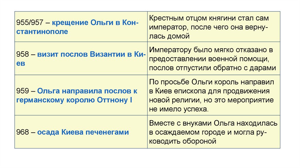 955/957 – крещение Ольги в КонстантинополеКрестным отцом княгини стал сам