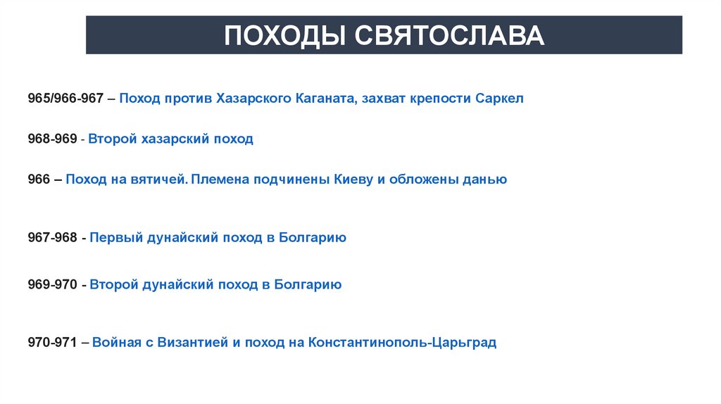 ПОХОДЫ СВЯТОСЛАВА965/966-967 – Поход против Хазарского Каганата, захват крепости Саркел