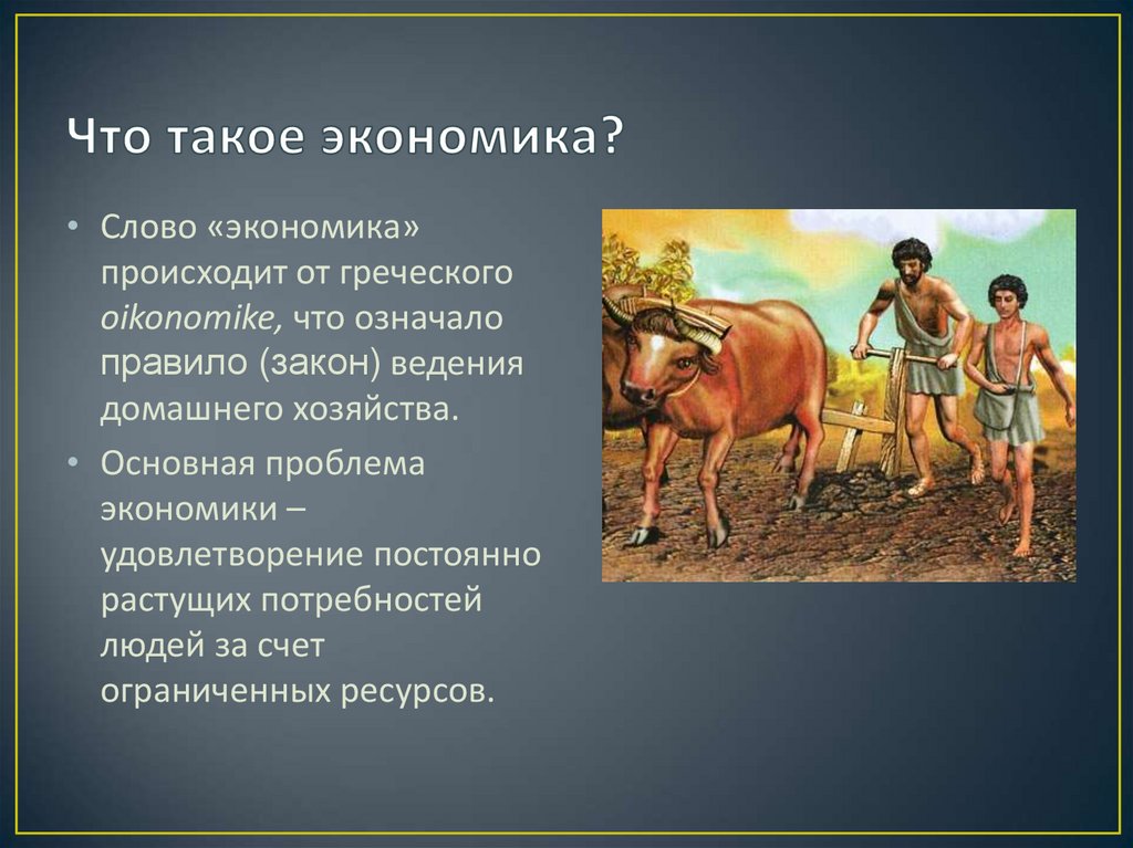• Слово «экономика»происходит от греческого