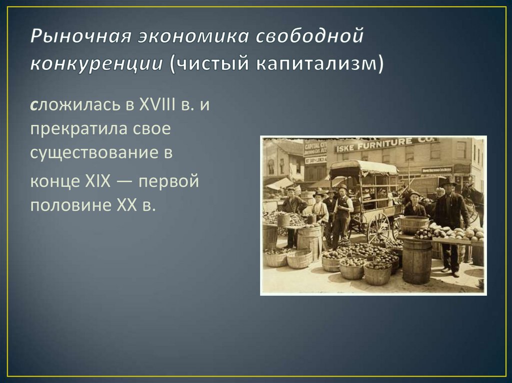 • Одна из главных предпосылок чистого капитализма —