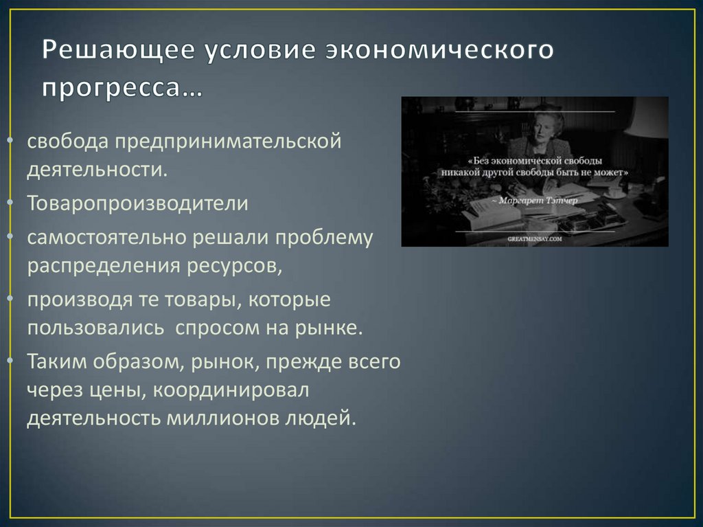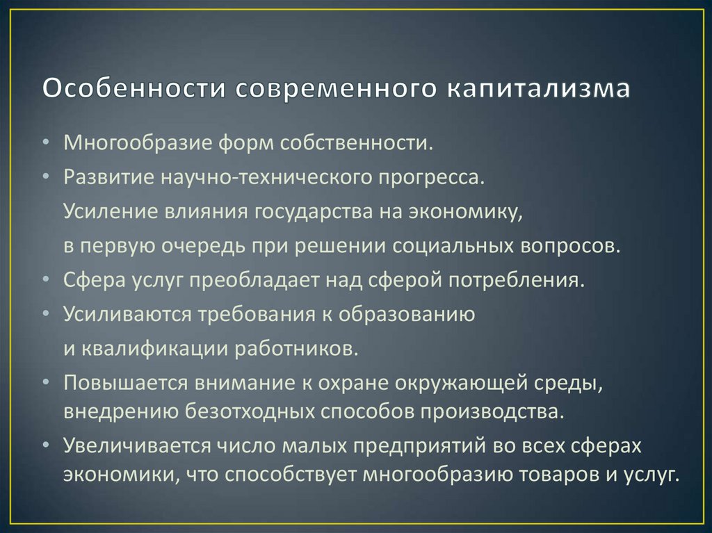 • Многообразие форм собственности.• Развитие научно-технического прогресса.