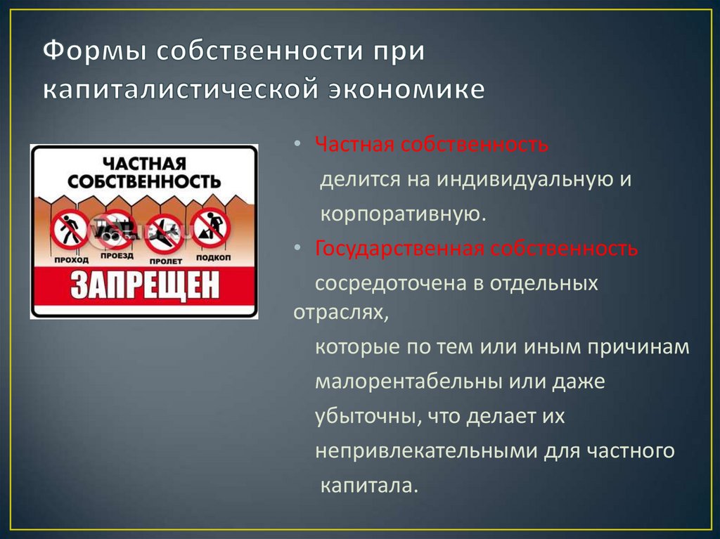 • Частная собственностьделится на индивидуальную и