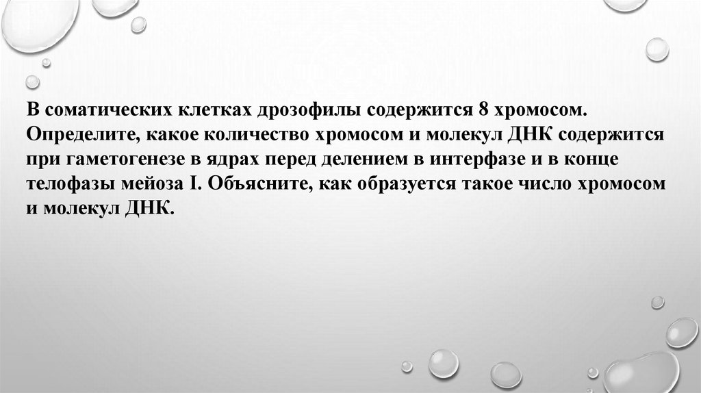 В соматических клетках дрозофилы содержится 8 хромосом.Определите, какое количество хромосом и молекул ДНК содержится