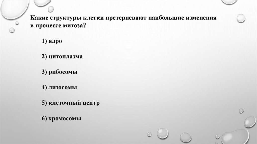 Какие структуры клетки претерпевают наибольшие измененияв процессе митоза?