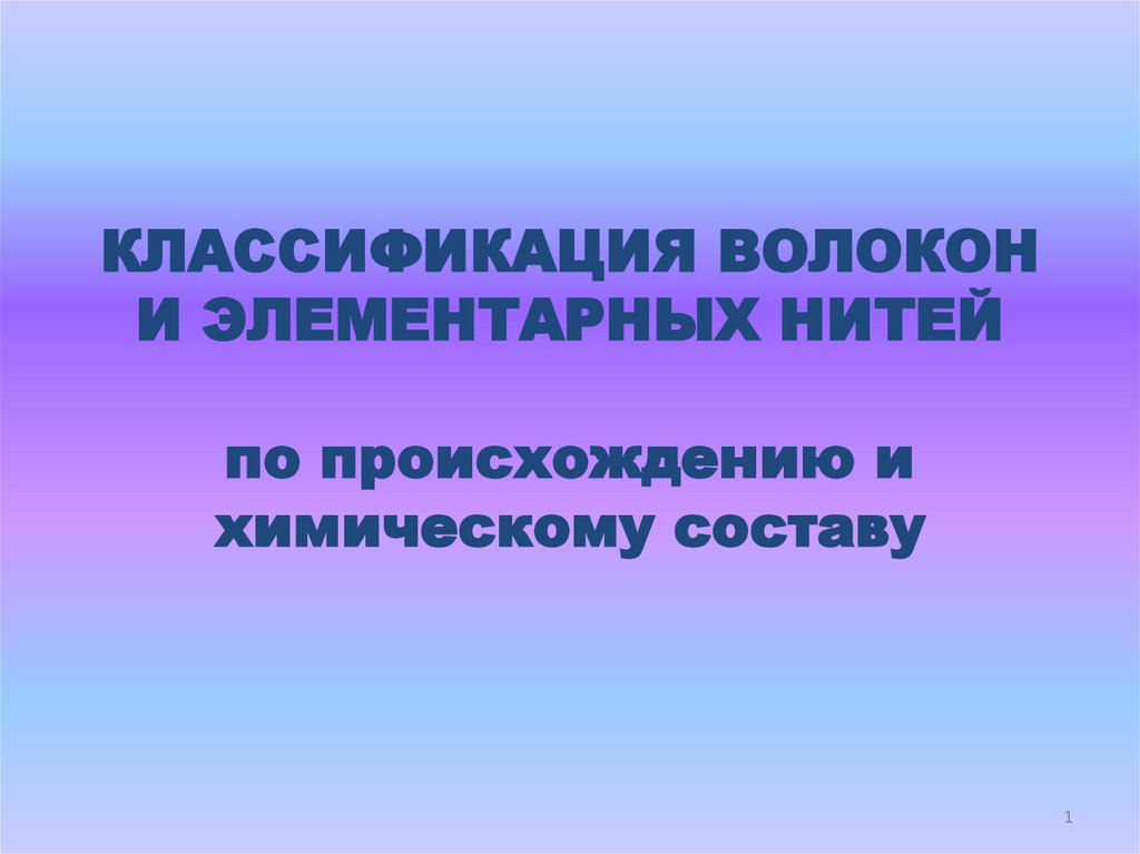 1. КЛАССИФИКАЦИЯ ВОЛОКОН И ЭЛЕМЕНТАРНЫХ НИТЕЙ по происхождению и химическому составу