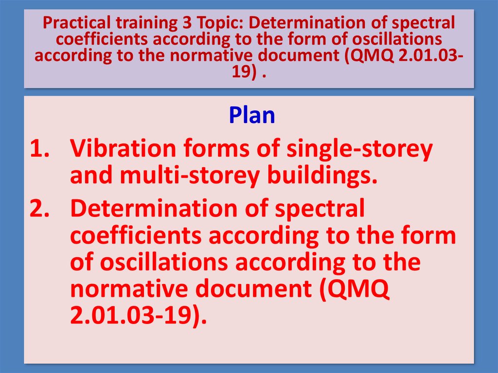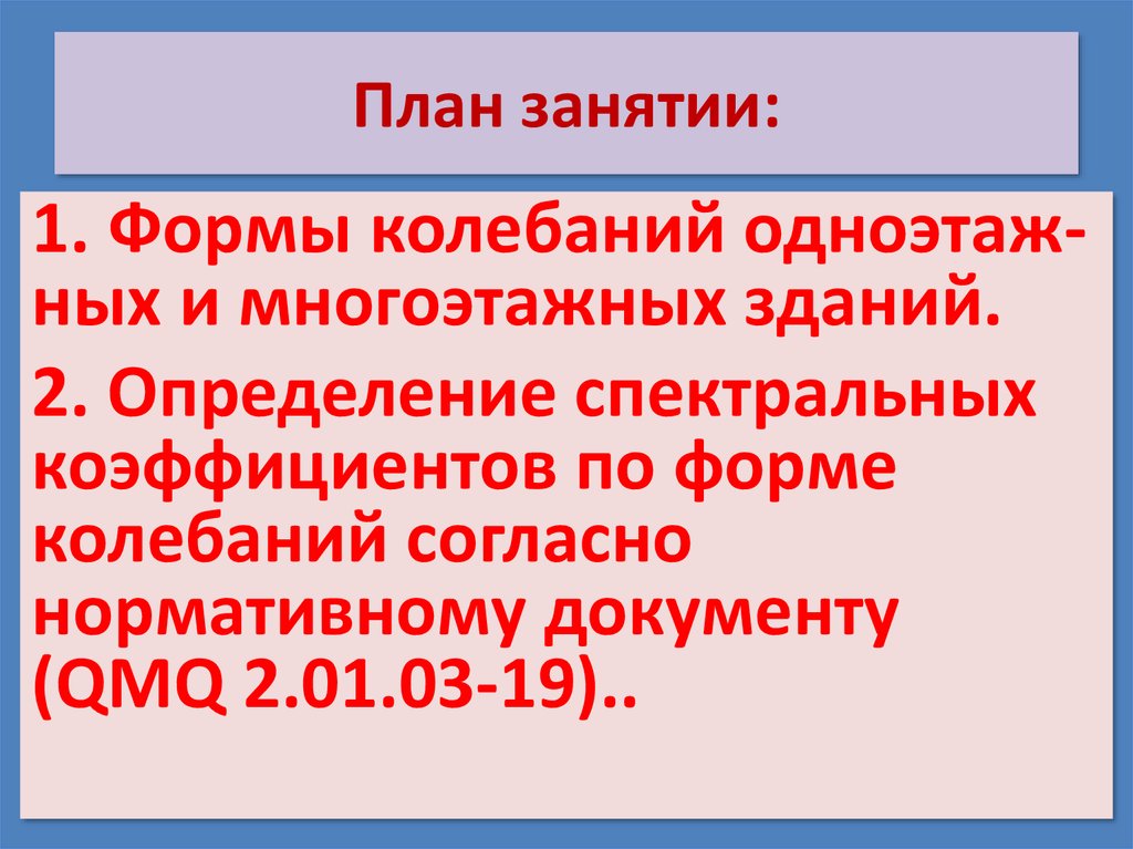 План занятии:1. Формы колебаний одноэтажных и многоэтажных зданий.