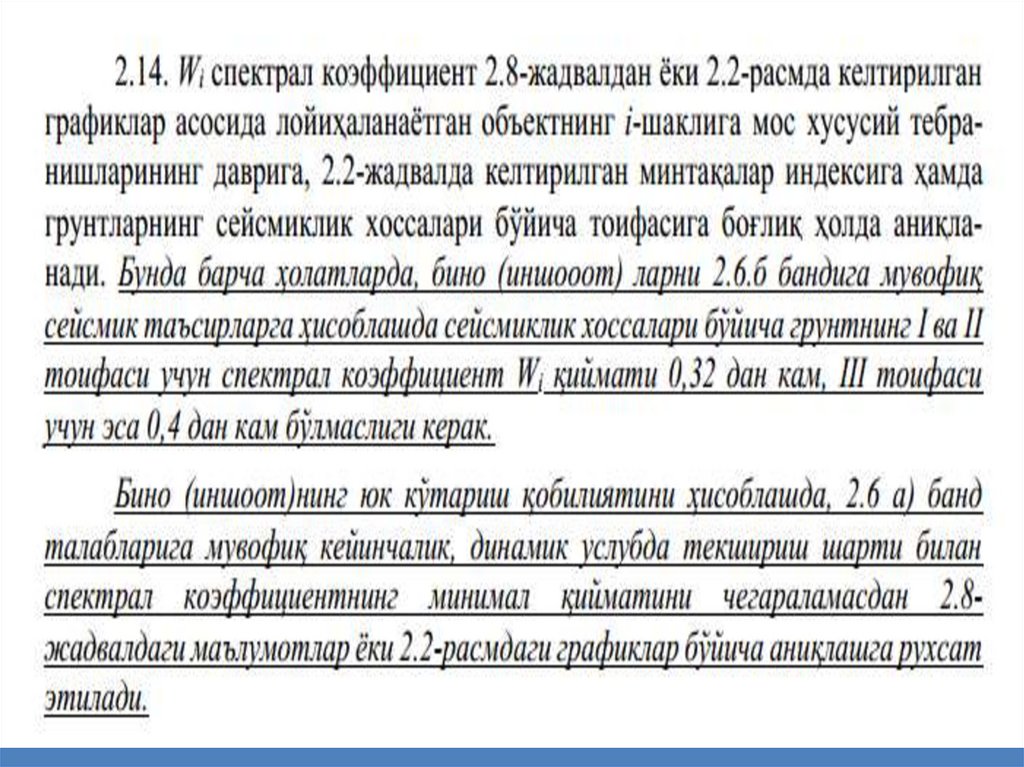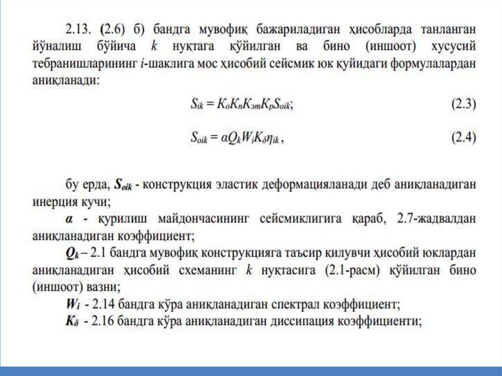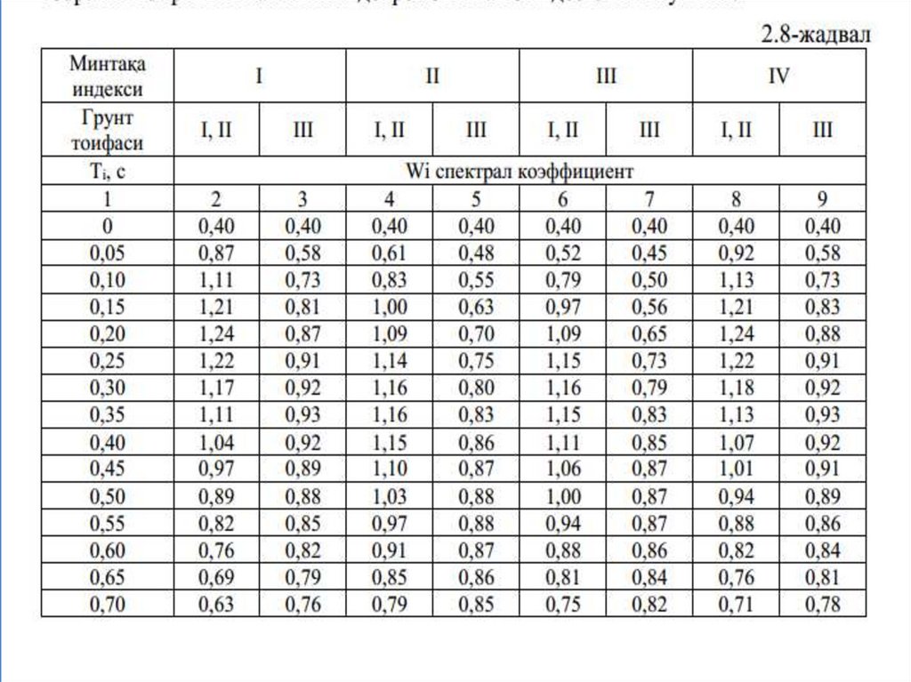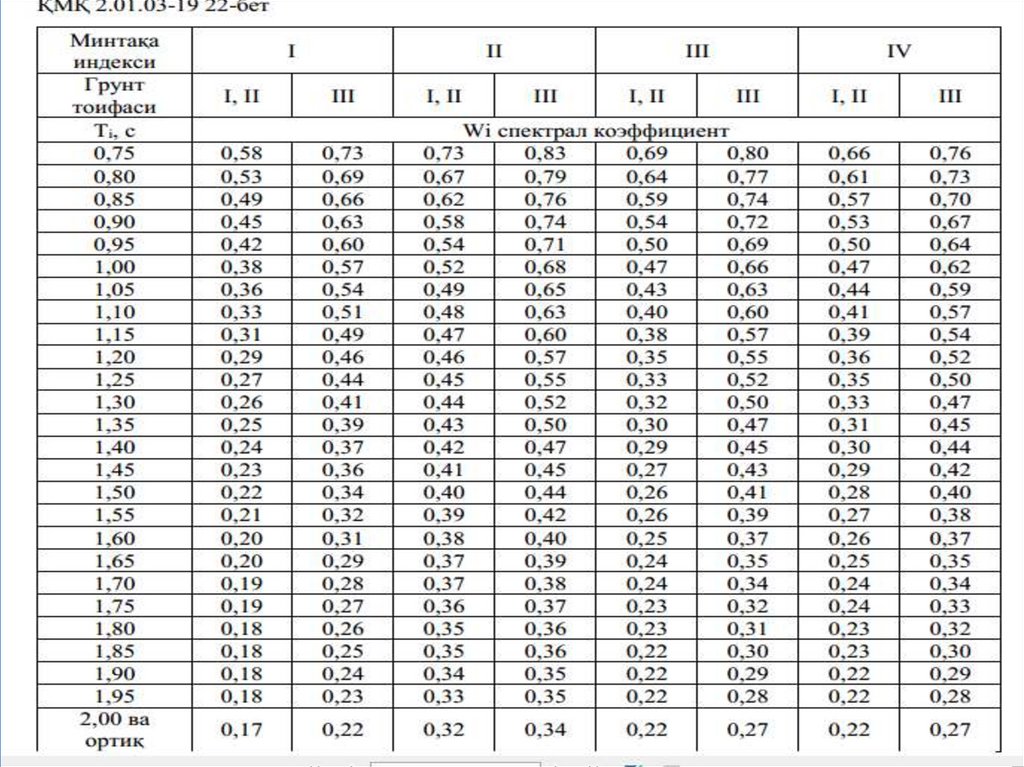 Определение спектральных коэффициентов в соответствии с формой колебании здании по нормативному документу