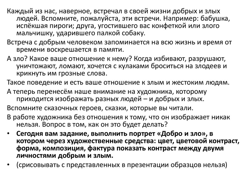 • Сегодня вам задание, выполнить портрет «Добро и зло», в