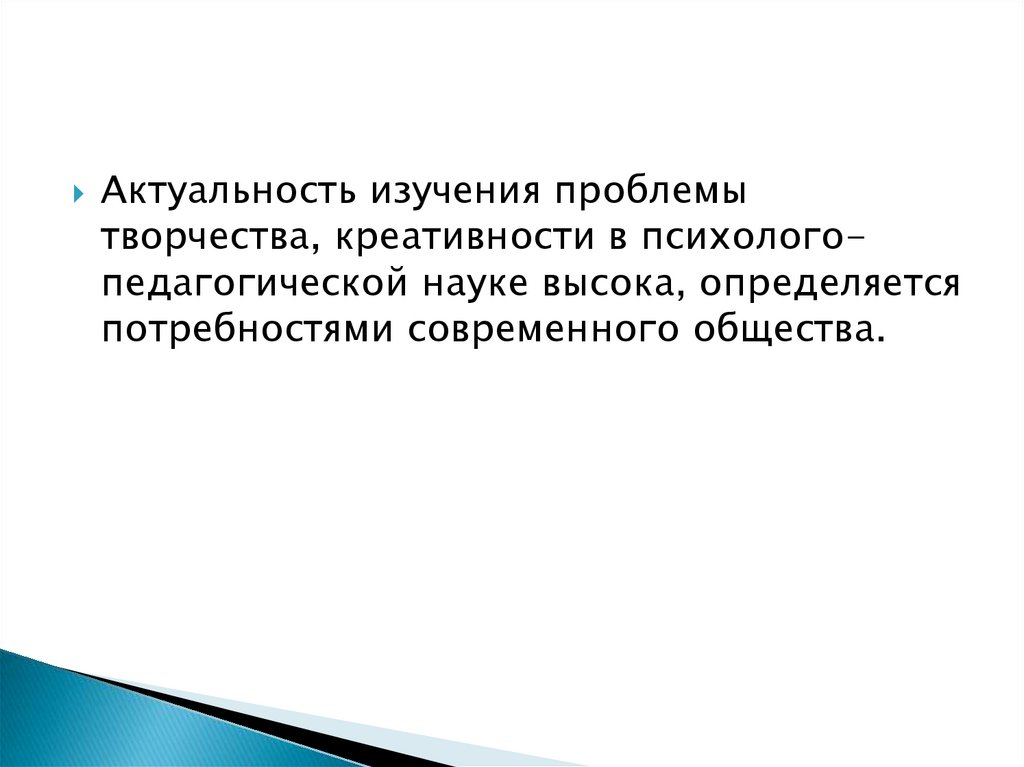 Актуальность изучения проблемытворчества, креативности в психологопедагогической науке высока, определяется