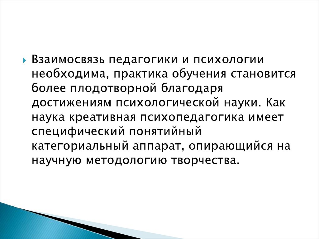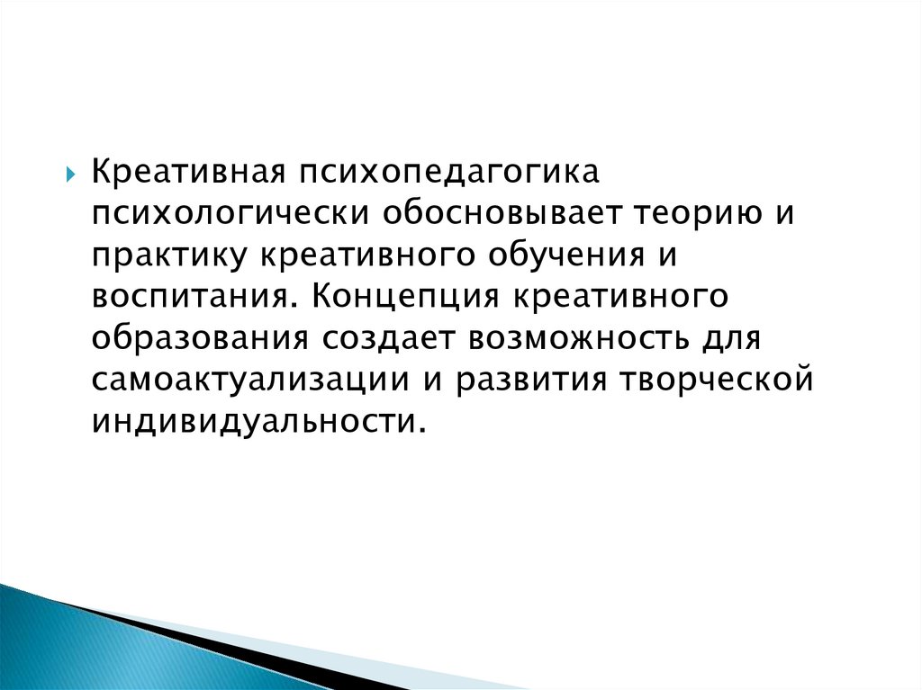 Креативная психопедагогикапсихологически обосновывает теорию и