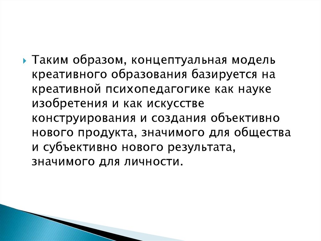 Таким образом, концептуальная моделькреативного образования базируется на