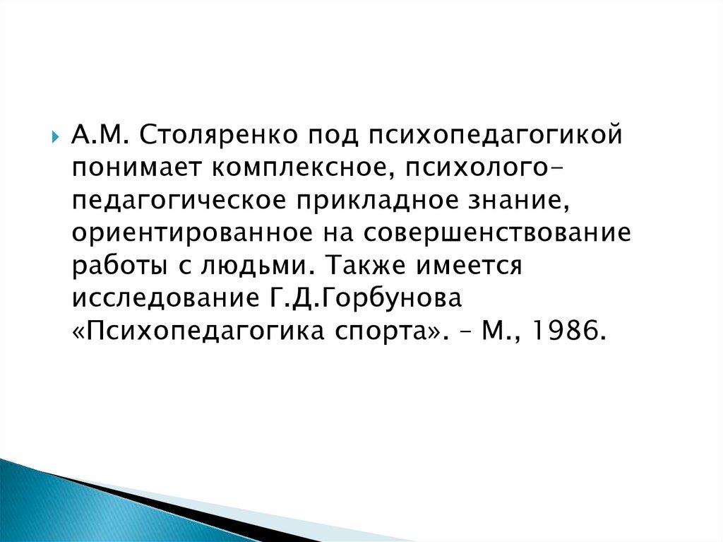 А.М. Столяренко под психопедагогикойпонимает комплексное, психологопедагогическое прикладное знание,