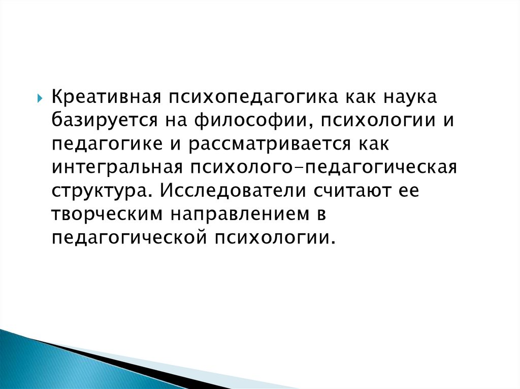 Креативная психопедагогика как наукабазируется на философии, психологии и