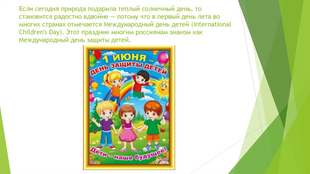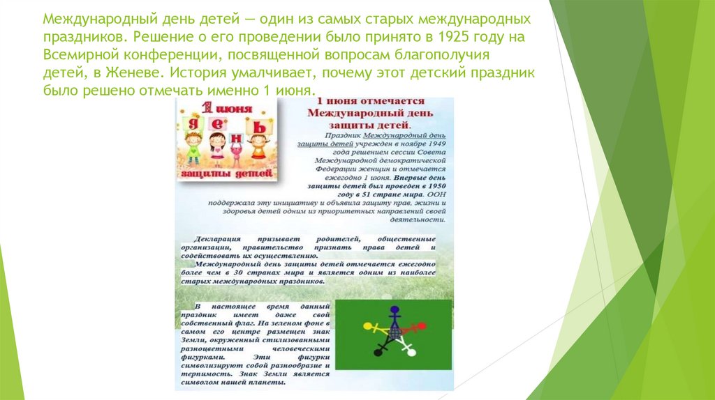 Международный день детей — один из самых старых международныхпраздников. Решение о его проведении было принято в 1925 году на