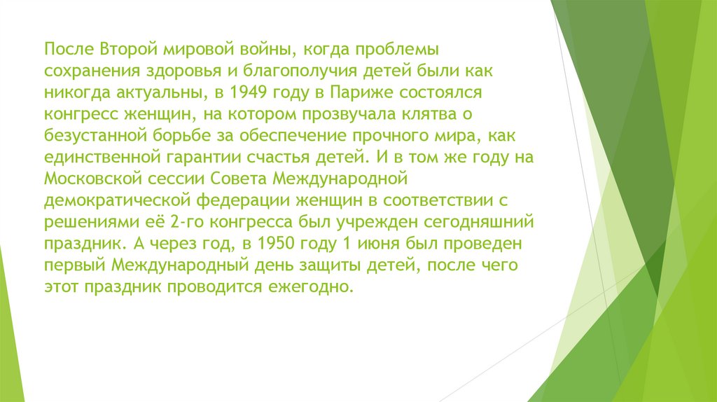 После Второй мировой войны, когда проблемысохранения здоровья и благополучия детей были как