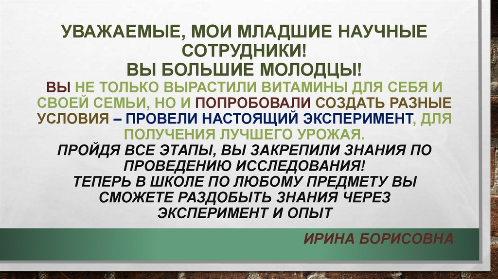 УВАЖАЕМЫЕ, МОИ МЛАДШИЕ НАУЧНЫЕСОТРУДНИКИ!