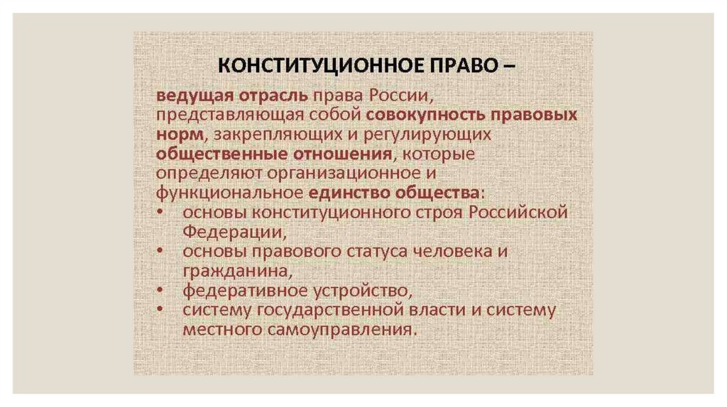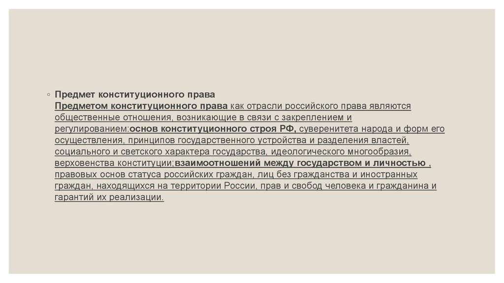 ◦ Предмет конституционного праваПредметом конституционного права как отрасли российского права являются