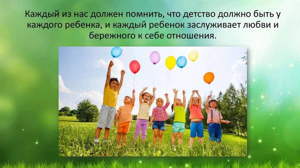 Каждый из нас должен помнить, что детство должно быть укаждого ребенка, и каждый ребенок заслуживает любви и