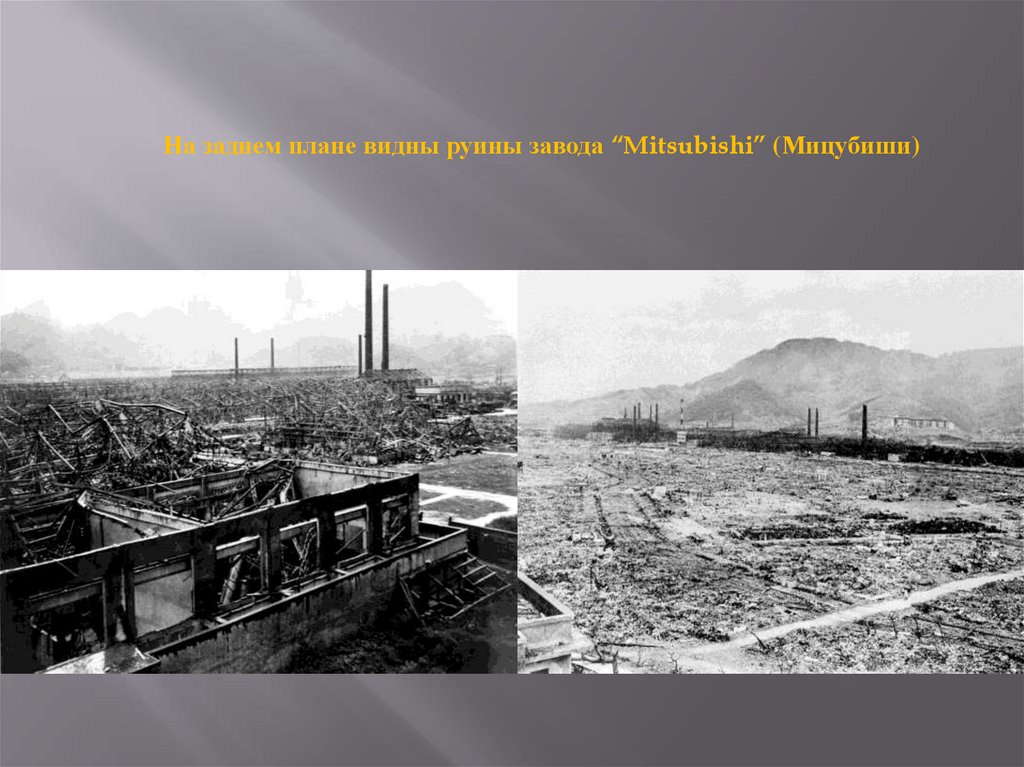 На заднем плане видны руины завода “Mitsubishi” (Мицубиши)14.