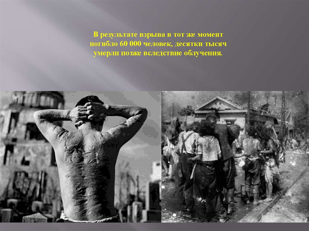В результате взрыва в тот же моментпогибло 60 000 человек, десятки тысяч