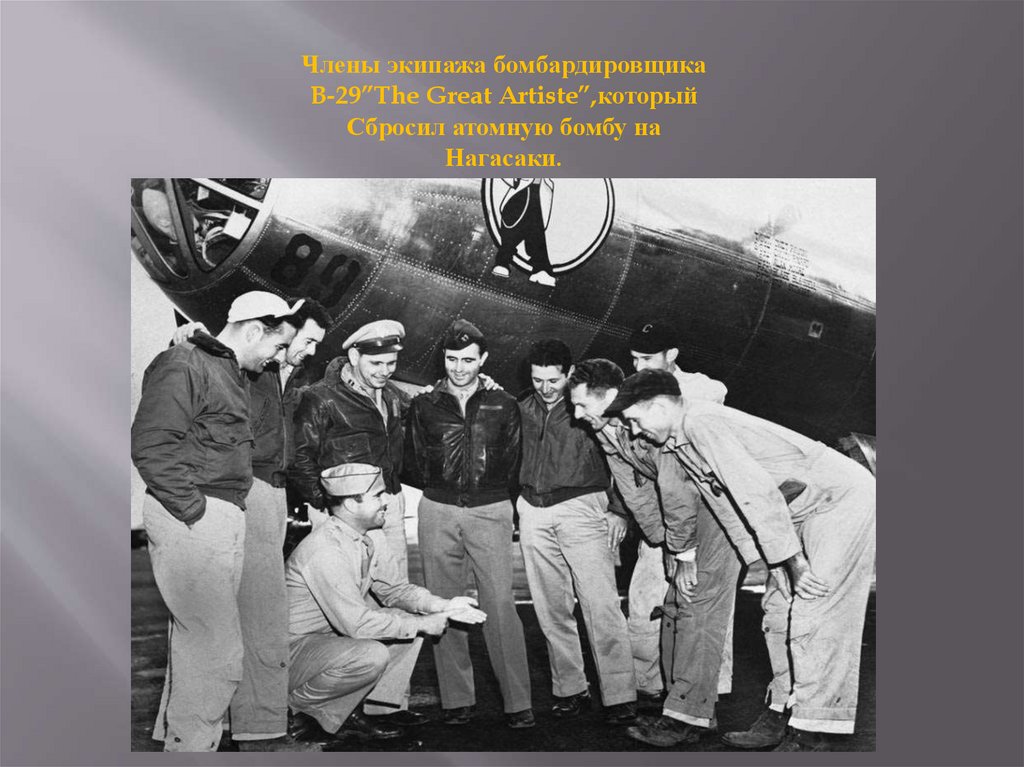 Члены экипажа бомбардировщикаB-29”The Great Artiste”,который