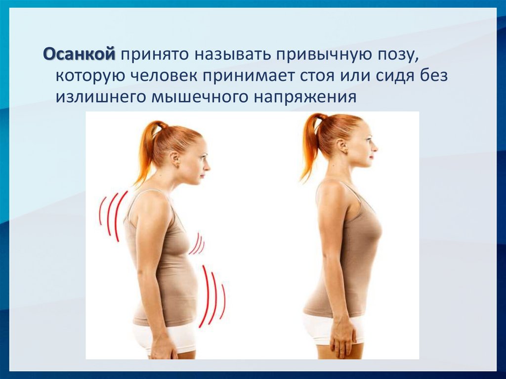 Осанкой принято называть привычную позу,которую человек принимает стоя или сидя без