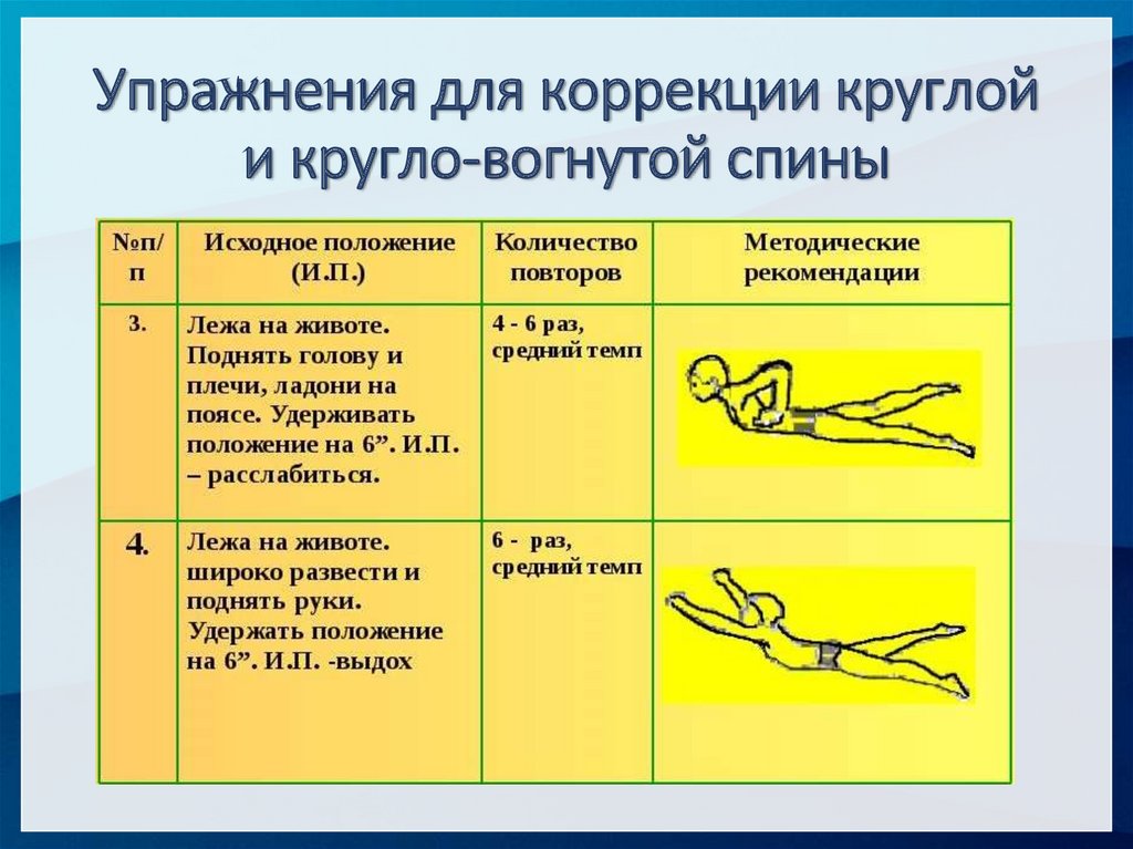 Упражнения для коррекции круглойи кругло-вогнутой спины