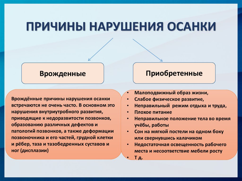 ПРИЧИНЫ НАРУШЕНИЯ ОСАНКИПриобретенные