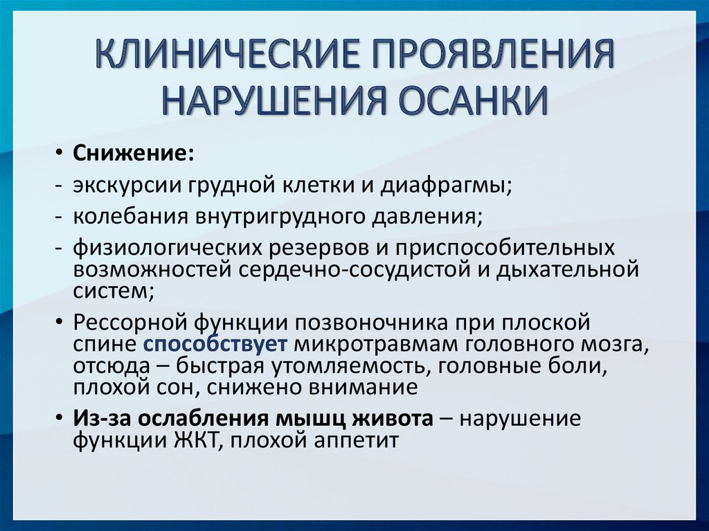 КЛИНИЧЕСКИЕ ПРОЯВЛЕНИЯНАРУШЕНИЯ ОСАНКИ