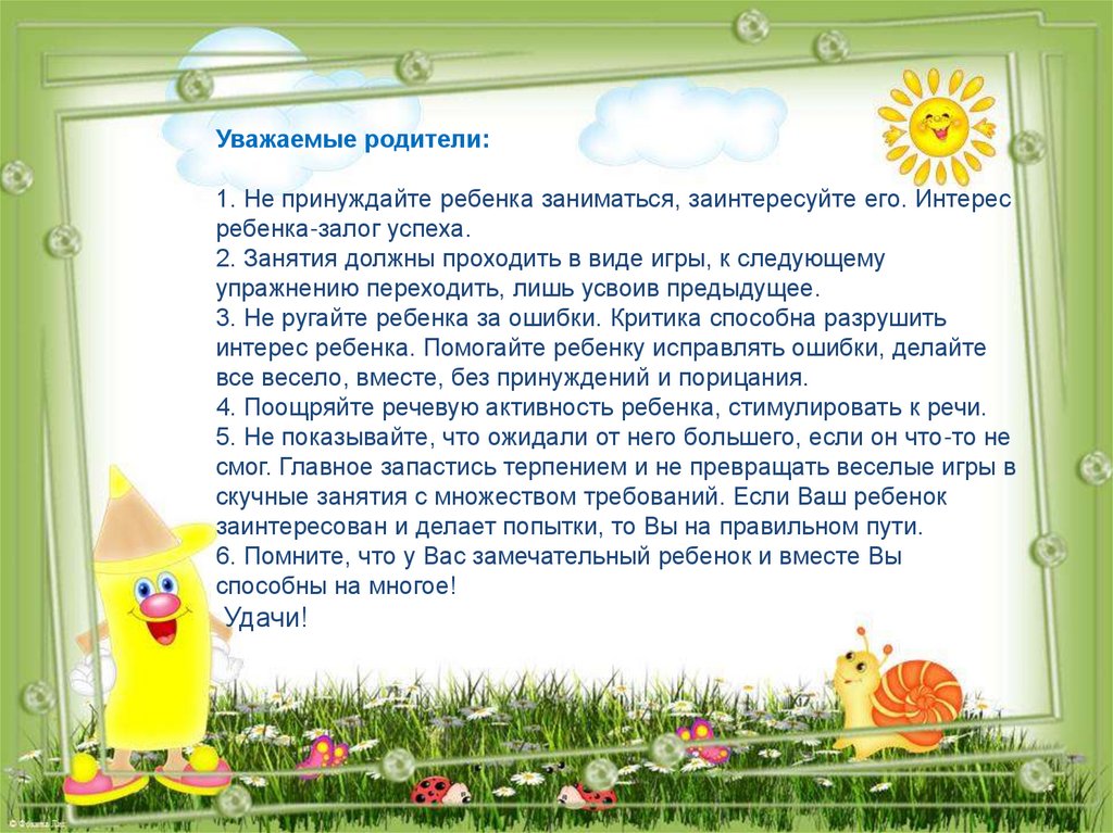 Уважаемые родители:1. Не принуждайте ребенка заниматься, заинтересуйте его. Интерес