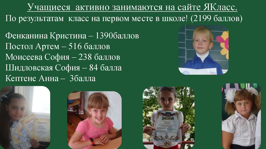 Учащиеся активно занимаются на сайте ЯКласс.По результатам класс на первом месте в школе! (2199 баллов)
