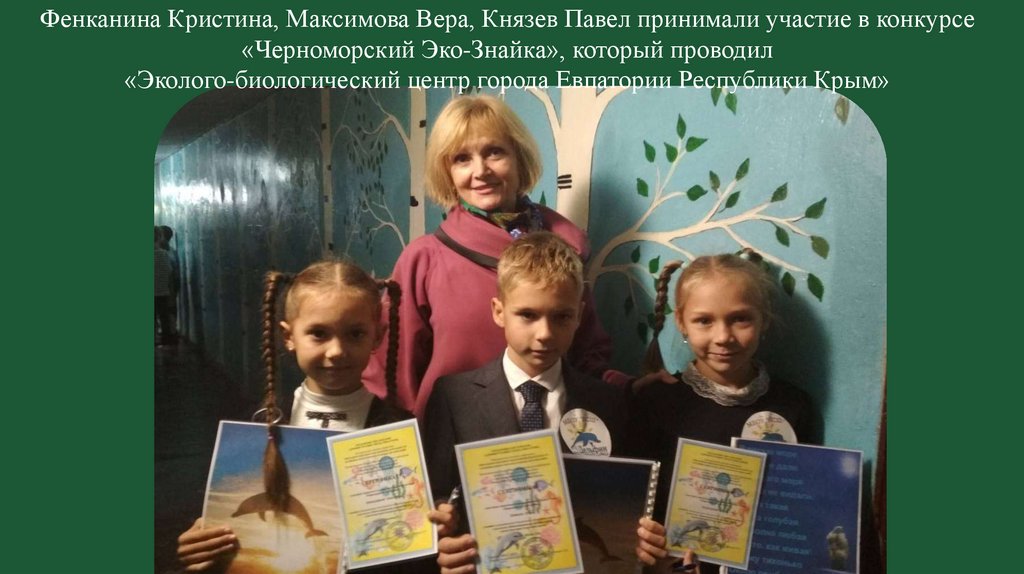 Фенканина Кристина, Максимова Вера, Князев Павел принимали участие в конкурсе«Черноморский Эко-Знайка», который проводил