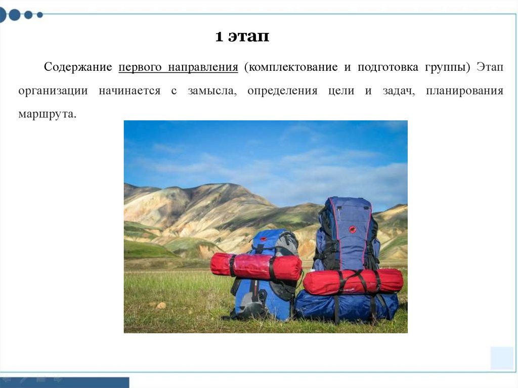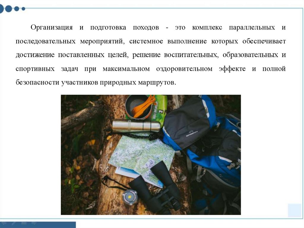 Организация и подготовка походов - это комплекс параллельных ипоследовательных мероприятий, системное выполнение которых обеспечивает