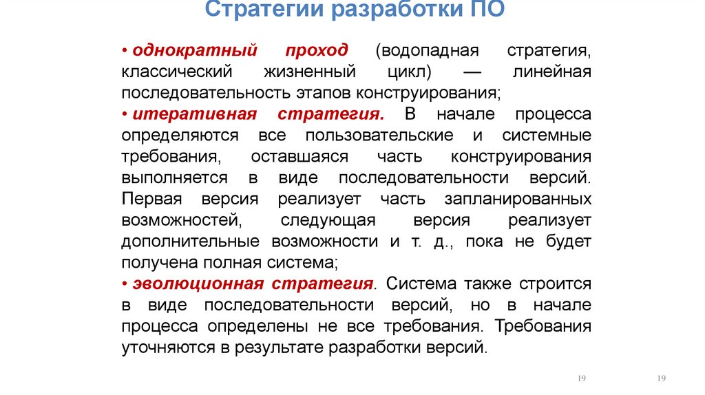 Стратегии разработки ПО• однократный