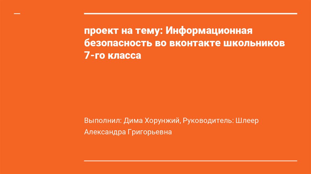 проект на тему: Информационнаябезопасность во вконтакте школьников