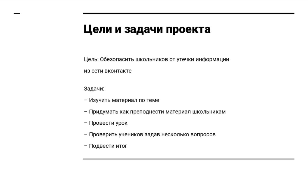 Цели и задачи проектаЦель: Обезопасить школьников от утечки информации
